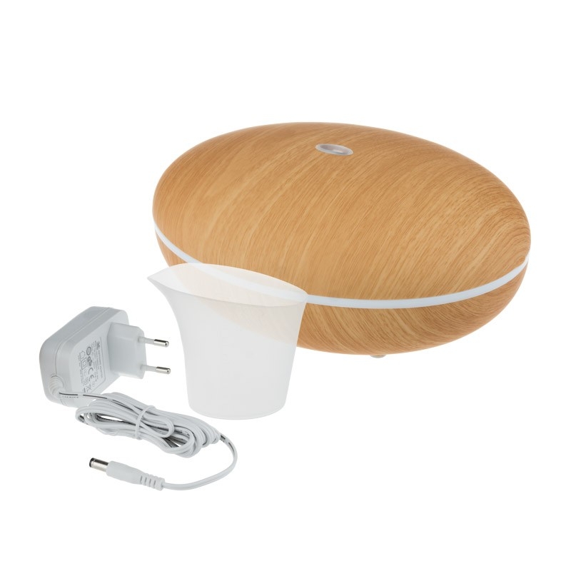 Při vyprázdnění nádoby na vodu se aroma difuzér automaticky vypne. Jde o přenosný přístroj použitelný pro domácnost, yógu, kancelář, saunu, ložnici či dětský pokoj.