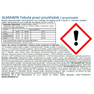 DÁVKOVÁNÍ: Dávkujte přímo do bubnu. Na zvlášť odolné skvrny použijte ALMAWIN Bělidlo.