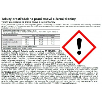 Díky svému šetrnému složení chrání strukturu vláken i sytost barev, takže vaše prádlo zůstane dlouho jako nové. Obsahuje zjemňující pšeničný protein a výtažek z mýdlových ořechů, který prostředku propůjčují tmavší barvu. Přírodní esenciální oleje z verbeny a eukalyptu vaše prádlo příjemně provoní čistotou a svěžestí. Prostředek je vhodný na přírodní, smíšené i syntetické tkaniny při teplotách 20-60°C. Nezatěžuje životní prostředí, je 100% odbouratelný. K výrobě obalu bylo z 95 % použito recyklovaného plastu. Pro přírodní, smíšené a syntetické tkaniny při teplotách 20-60°.