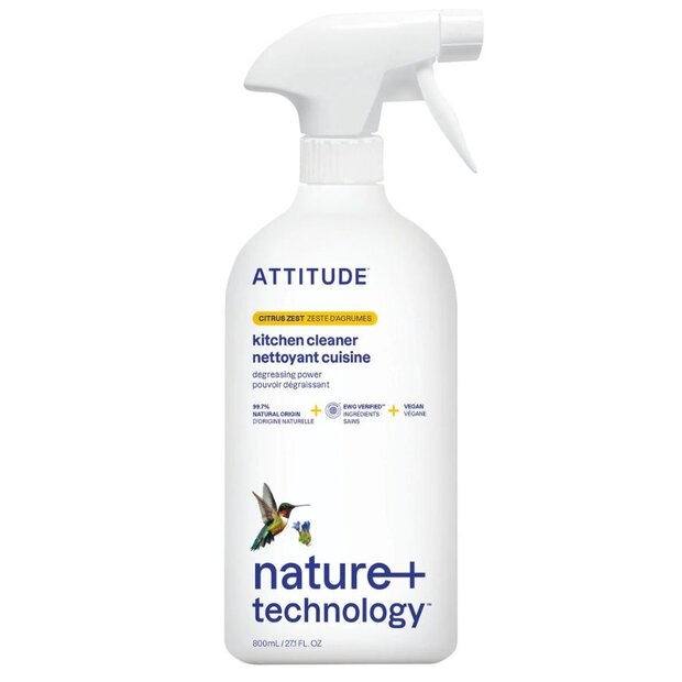 Čistíci prostředek na kuchyně ATTITUDE s NATURE+ technologií inspirovala síla přírody a vědy; bere ohled na vás, vaši rodinu i celou planetu. Je vyroben z vysoce účinných rostlinných přísad, které díky své čistící a osvěžující síle rozzáří celou vaši kuchyni.