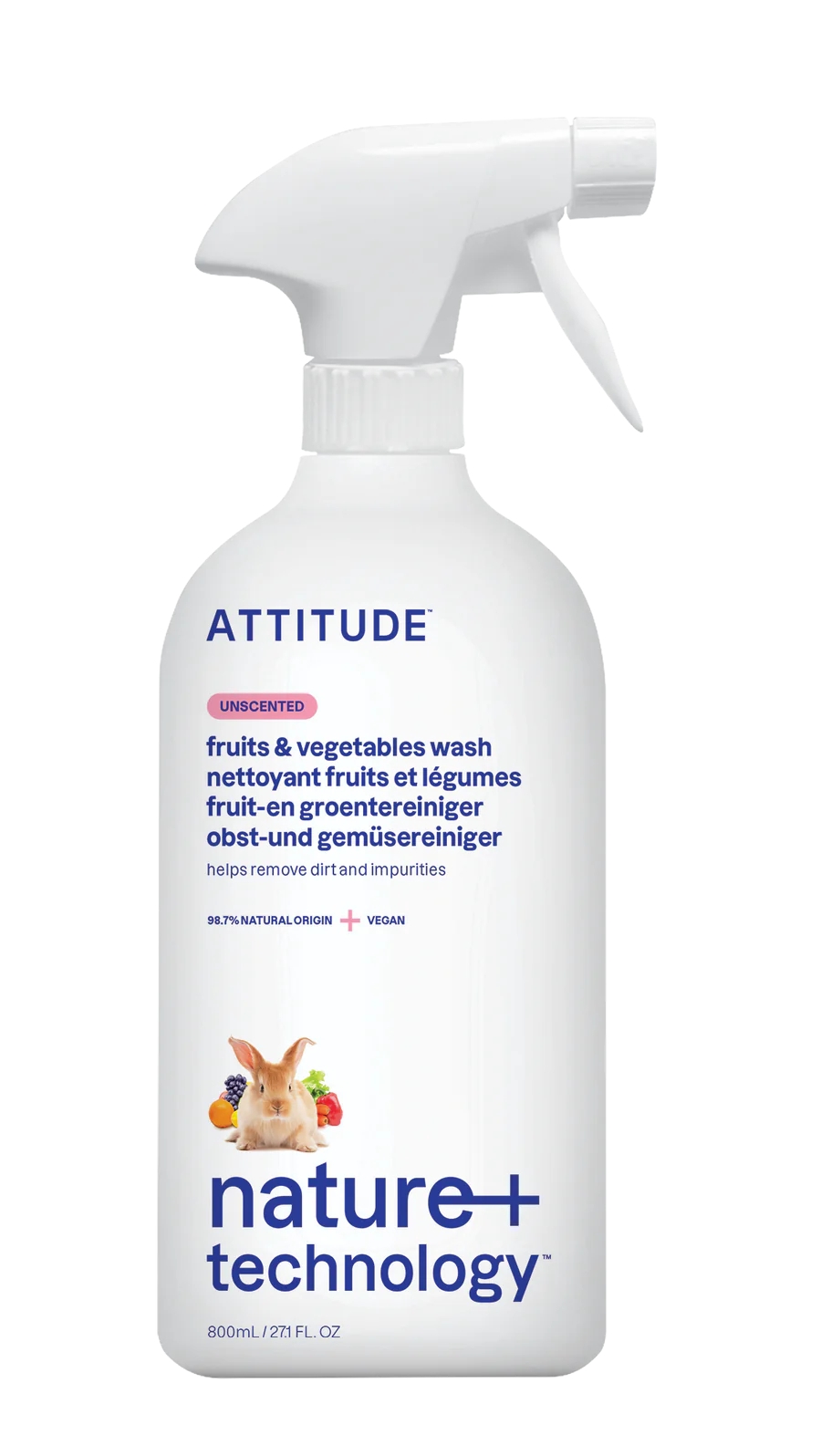 Čisticí prostředek ATTITUDE s NATURE+ technologií inspirovala síla přírody a vědy; bere ohled na vás, vaši rodinu i celou planetu. Je vyroben z vysoce účinných rostlinných přísad, které díky své čistící netoxické síle odstraní špínu, vosk a další látky z ovoce a zeleniny. Bez chutě a vůně.