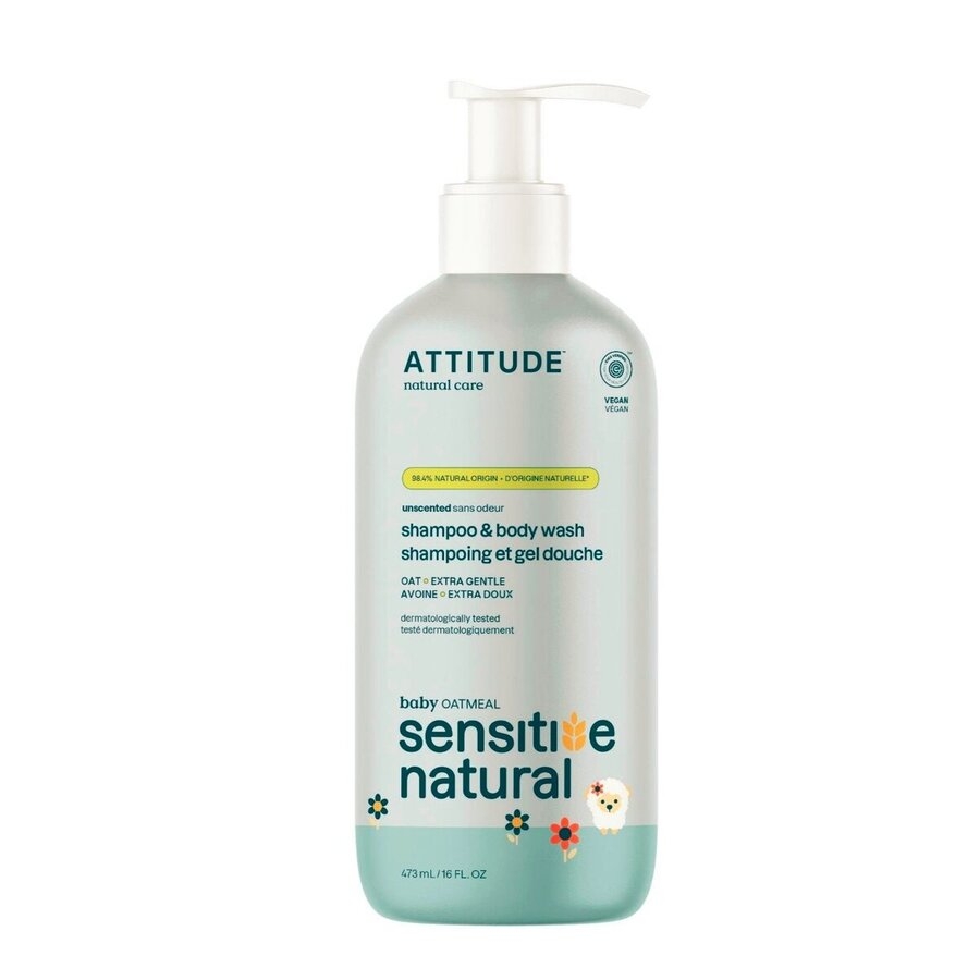 2v1 dětské tělové mýdlo a šampon ATTITUDE je speciálné navrženo pro obzvláště citlivou pokožkou miminek již od narození. Uklidňující receptura bez dráždivých sulfátů a s obsahem ovsa je navržena tak, aby vám pomohla pečovat o tu nejcitlivější pokožku se sklonem k podráždění a vysušování.