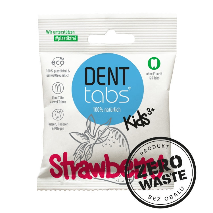 Recyklace a omezení plýtvání pasty = jakmile spotřebujete tablety DENTTABS®, tak je možné obal recyklovat. V tubě zubní pasty průměrně zůstane cca 11 g zbytkové pasty, která je nevyužita a vyhozena do komunálního odpadu. Např. jen v Německu se takto měsíčně vyhodí přes 440 tun zbytkové pasty.