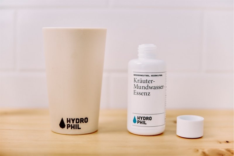Neutrální pro vodu: Hydrophil používá pouze materiály (včetně barev bez minerálních olejů a dodané umělé chemie), které jsou čistě přírodní (například bambus) a zároveň je možné je recyklovat nebo zkompostovat bez nebezpečí pro pitnou nebo spodní vodu.