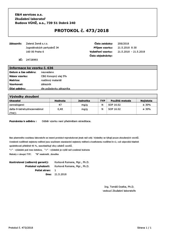 5% obsah CBG