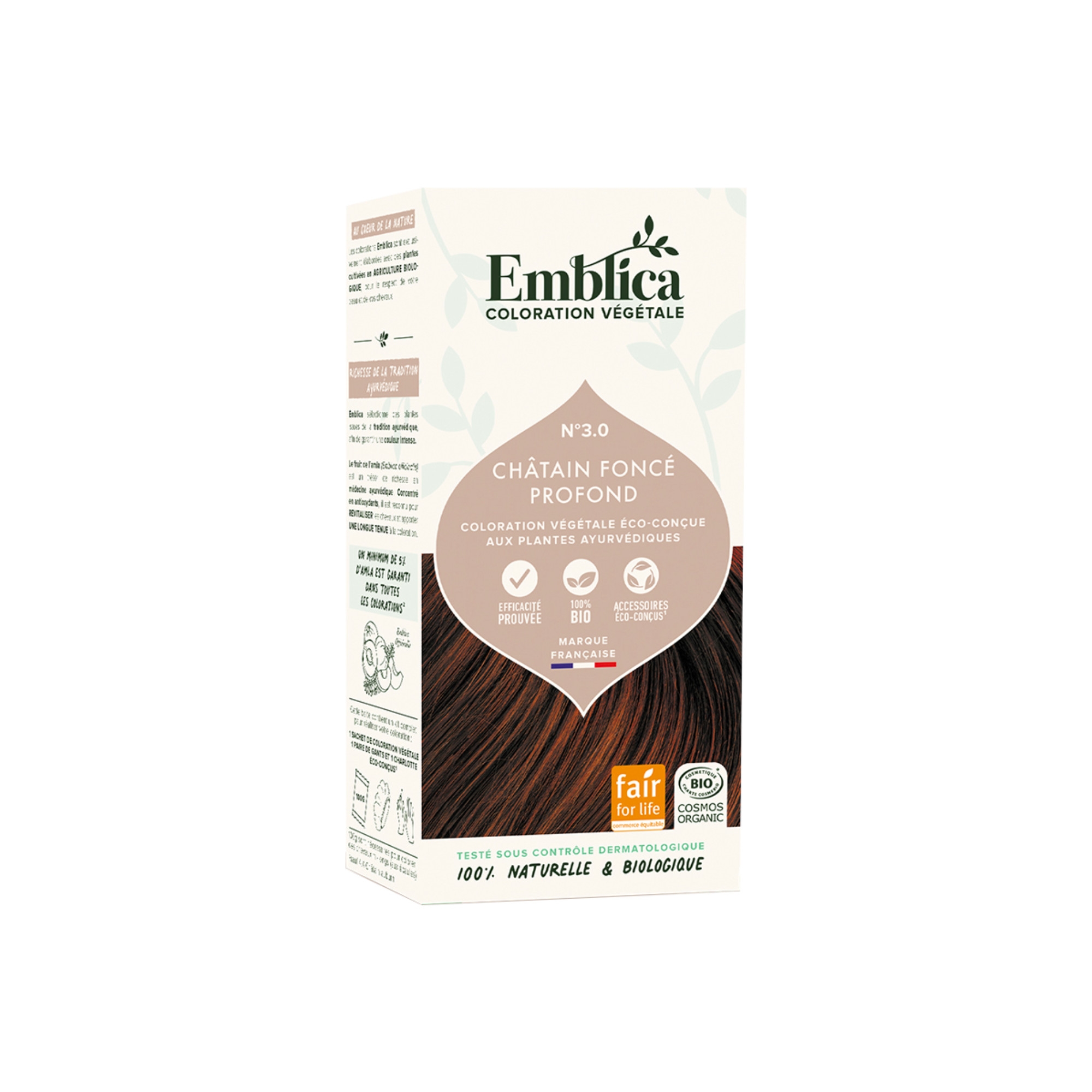Emblica přírodní rostlinná barva na vlasy „3.0 hluboce tmavě kaštanová“ je