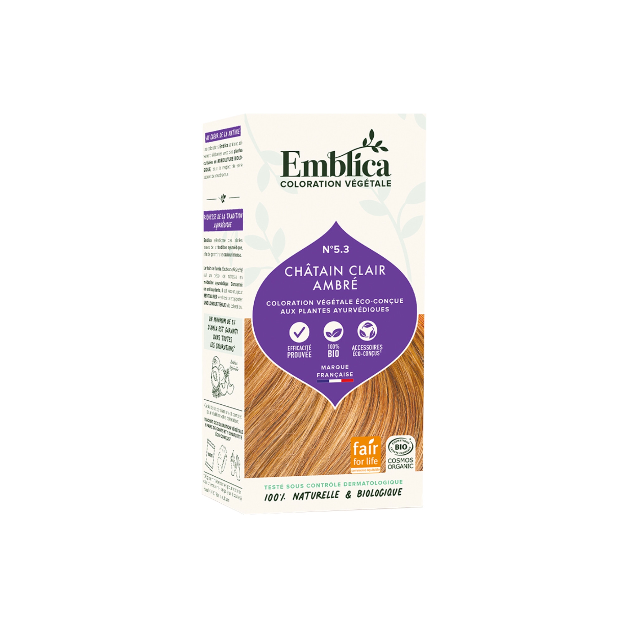 Emblica přírodní rostlinná barva na vlasy „5.3 světle jantarově kaštanová“ je