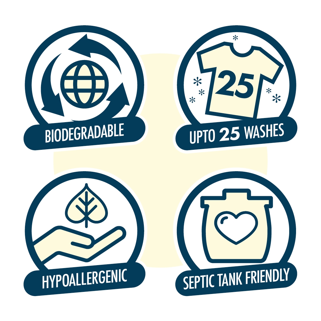 zabalen do papírového recyklovaného obalu, který je biologicky rozložitelný. Prací prášek je biologický odbouratelný a je