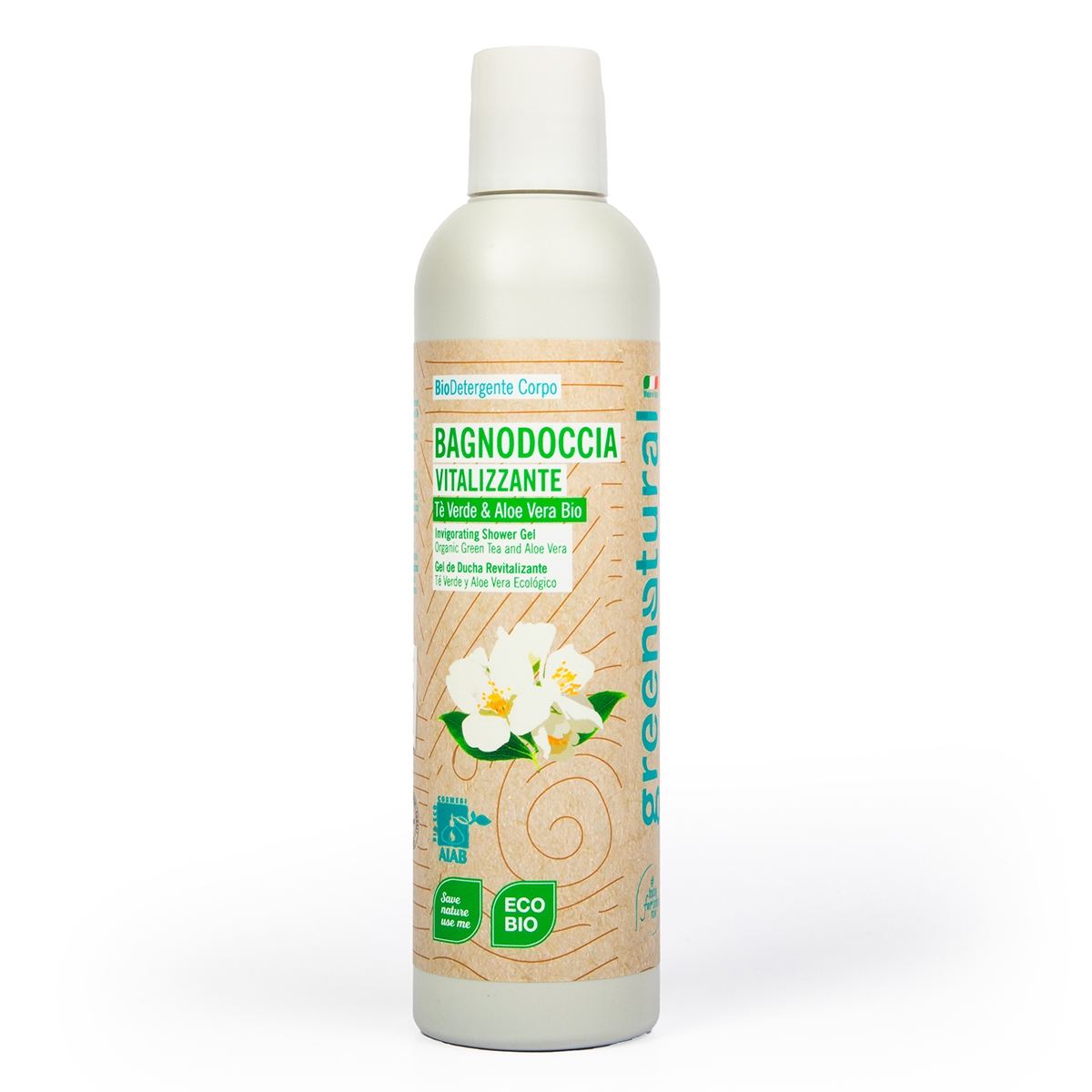 Greenatural Povzbuzující sprchový gel s bio výtažky zeleného čaje a bio šťávou z aloe vera