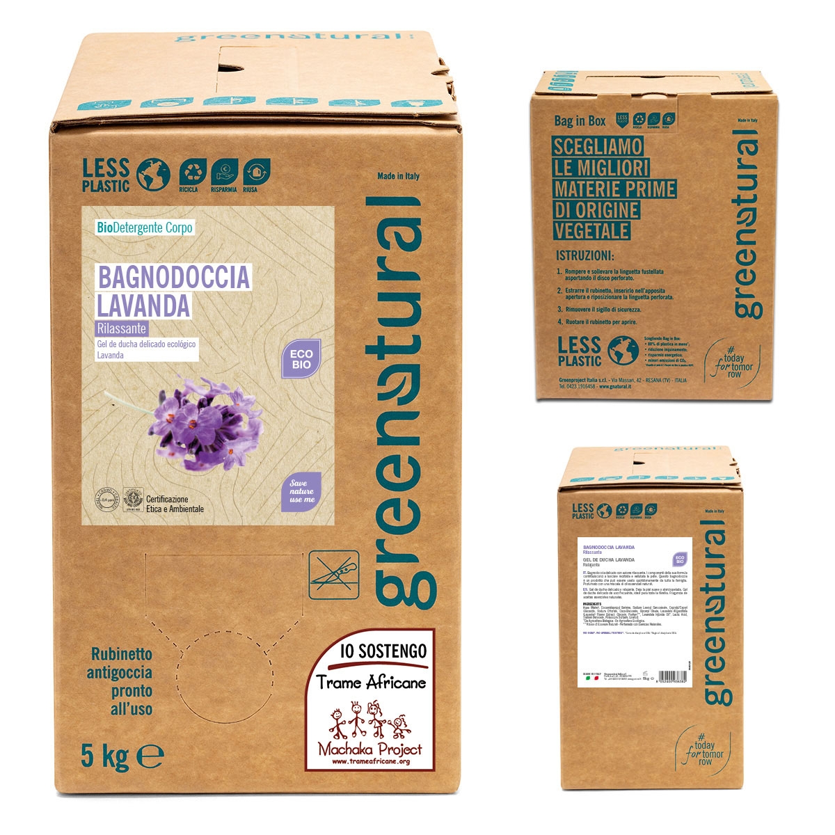 - baleno v systému Bag in Box s výpustným ventilem, který ve srovnání s 5 litrovými plastovými kanystry snižuje spotřebu plastů až o 80 %, snižuje znečištění, CO2 emise a šetří energii. Greenatural systém Bag in Box je recyklovatelný.