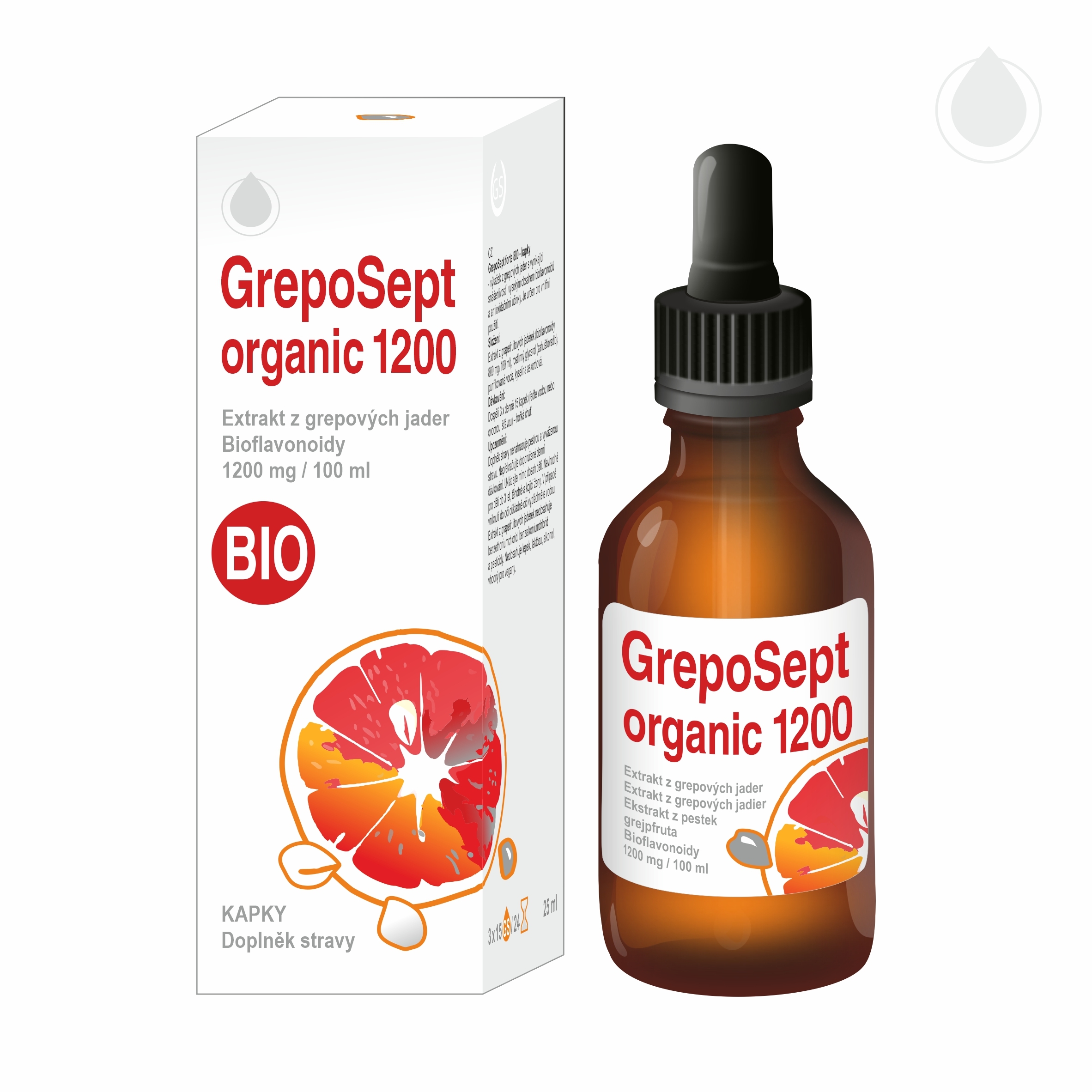 Kapky GrepoSept organic 1200 s nejvyšší koncentrací bioflavonoidů na trhu jsou přírodní produkt