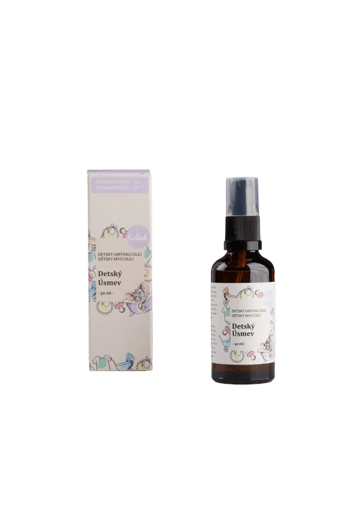 Jemný čistící olej Dětský úsměv je vhodný pro miminka od narození (od hmotnosti 3 kg), avšak
