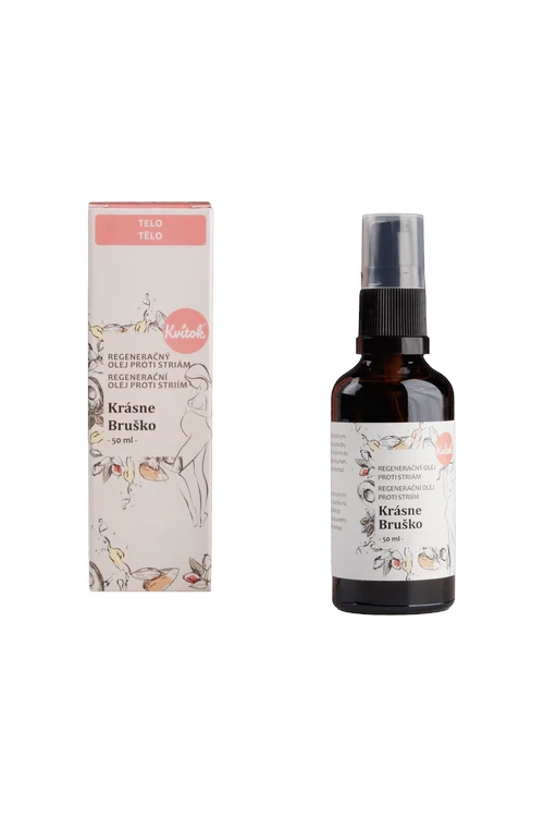 Pravidelným natíráním zabráníme vysušení pokožky, proto ve výbavě těhulky nesmí chybět ani kvalitní balzám/olej. Náš regenerační tělový olej Krásné Bříško zejména pomáhá udržovat pokožku hydratovanou a preventivně působí proti vzniku strií. V tomto pomáhají efektivně nerafinované verze