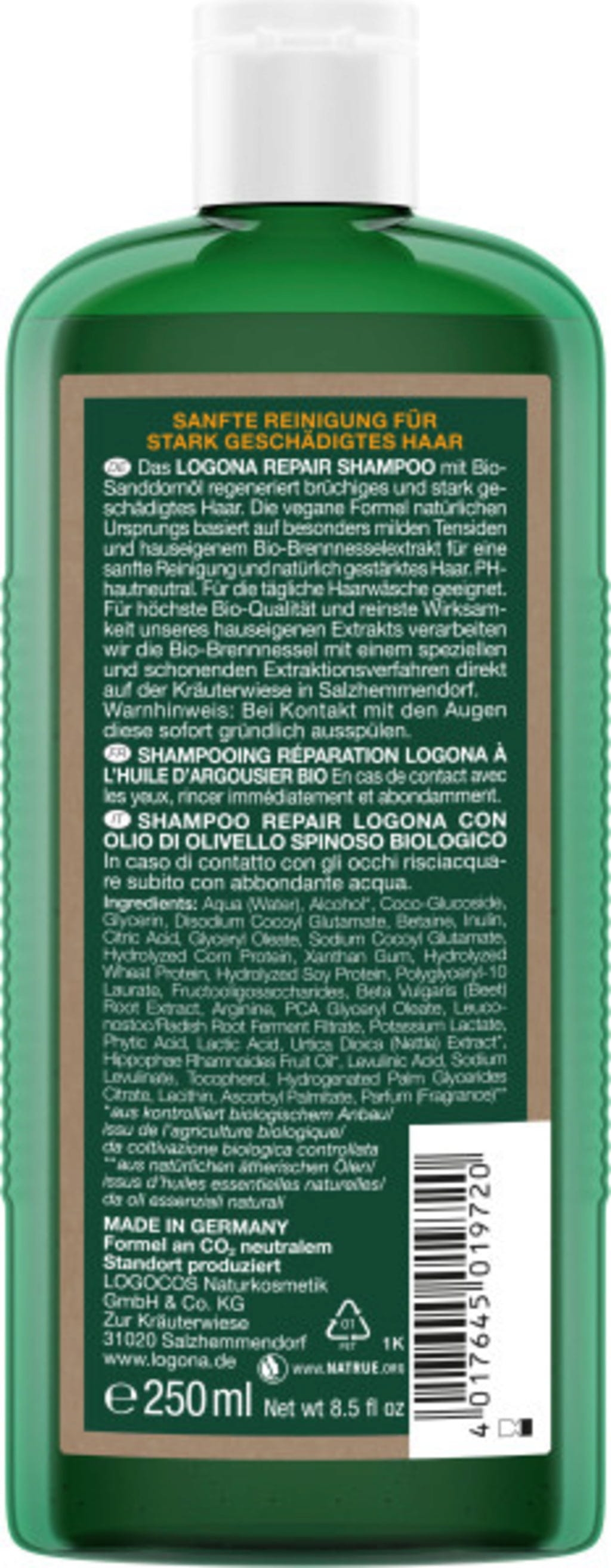 LOGONA Šampon Regenerace & Péče Bio Rakytník pečuje o a regeneruje vlasy. Vegetariánská receptura s organickým rakytníkovým olejem a jemnými tenzidy vyhlazuje poškozenou strukturu vlasů a zabraňuje dalšímu poškození vlasů.
