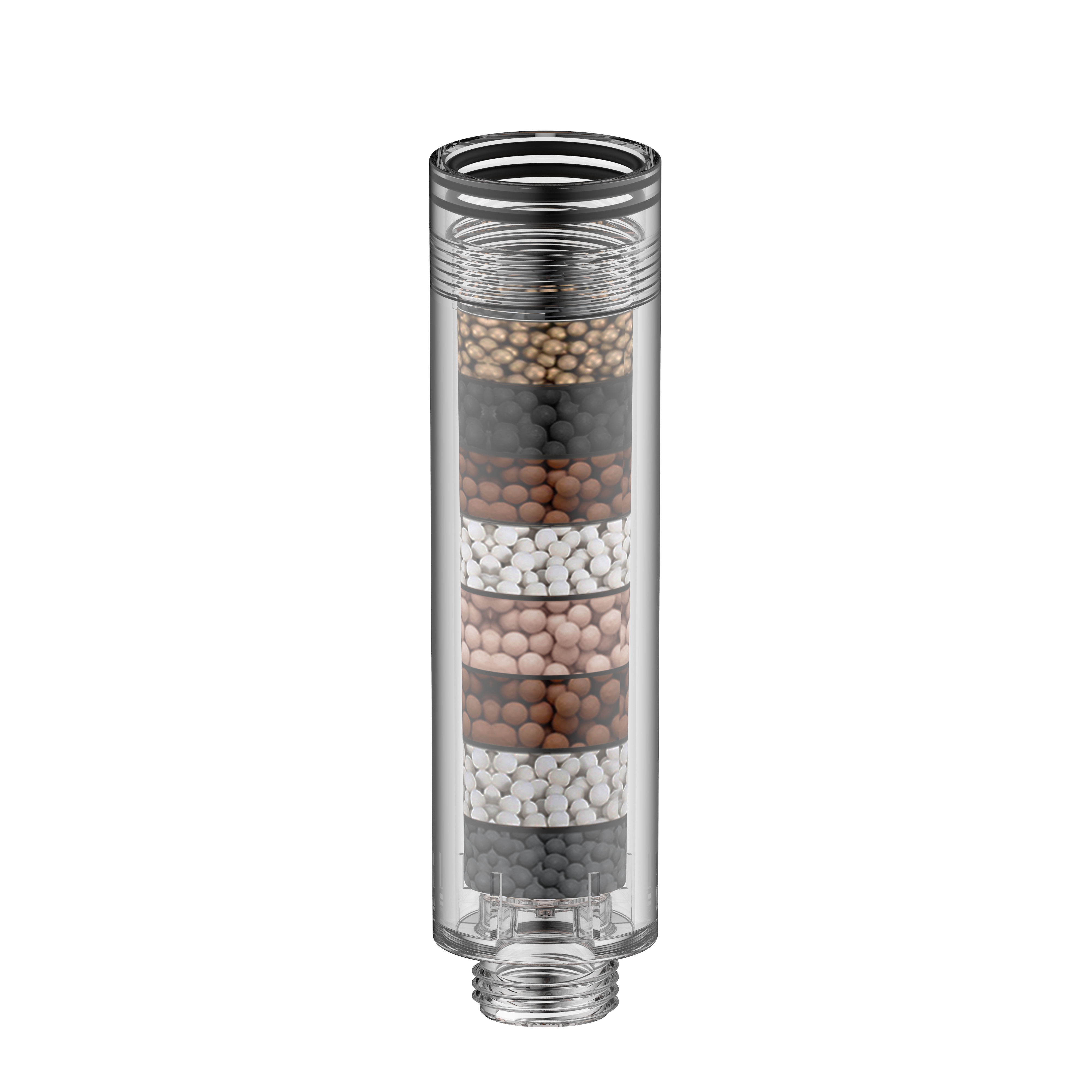 Kuličky s aktivním uhlím absorbují organické látky jako, pesticidy, herbicidy a některé karcinogenní látky. Odstraňuje zbytkový chlór, což přispívá k lepší kvalitě vody a zdraví pokožky. Podporují účinnost a životnost ostatních filtračních vrstev.