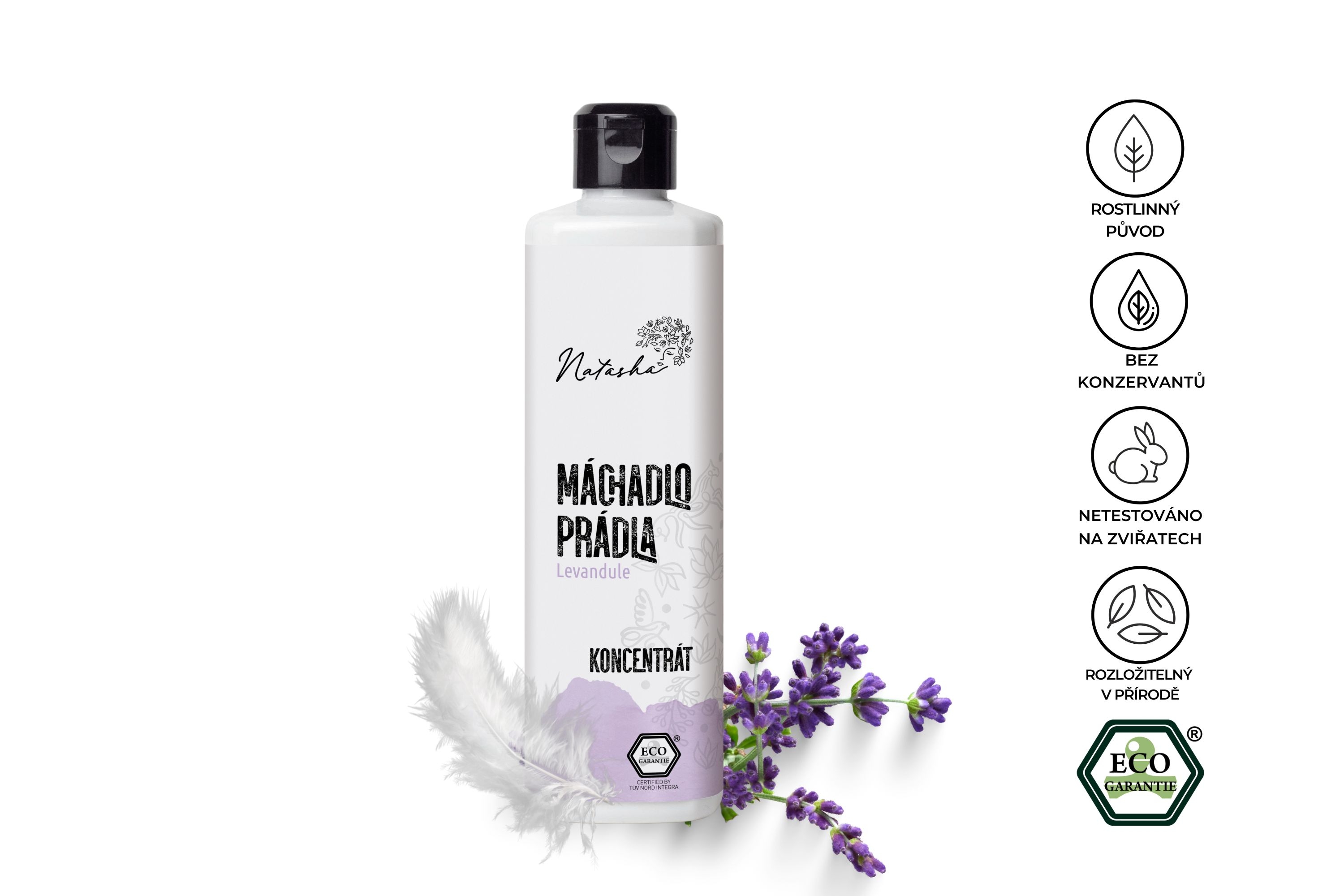 Natasha Máchadlo prádla je provoněno 100% bio přírodním esenciálním olejem z levandule. Jeho relaxační, uklidňující, osvěžující a čistící vlastnosti zpříjemní každé praní prádla.