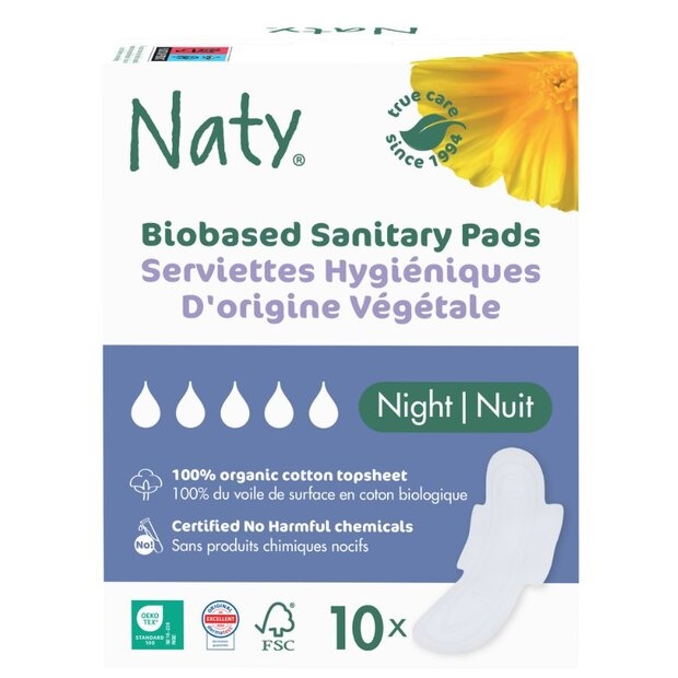 Nové, vylepšené menstruační vložky Eco by Naty jsou vyrobeny z kompostovatelných rostlinných materiálů, vnitřní vrstva vložky je z certifikované organické bavlny a jsou nově individuálně baleny. Celkový obal i obaly jednotlivých vložek jsou z