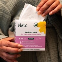 Menstruační vložky Naty jsou vyrobeny z kompostovatelných rostlinných materiálů. Celkový obal je z recyklovatelného papíru a obaly jednotlivých vložek jsou z certifikované 100% kompostovatelné fólie vyrobené z obnovitelných rostlinných materiálů. Jejich používáním tak může vaše svědomí zůstat naprosto čisté.