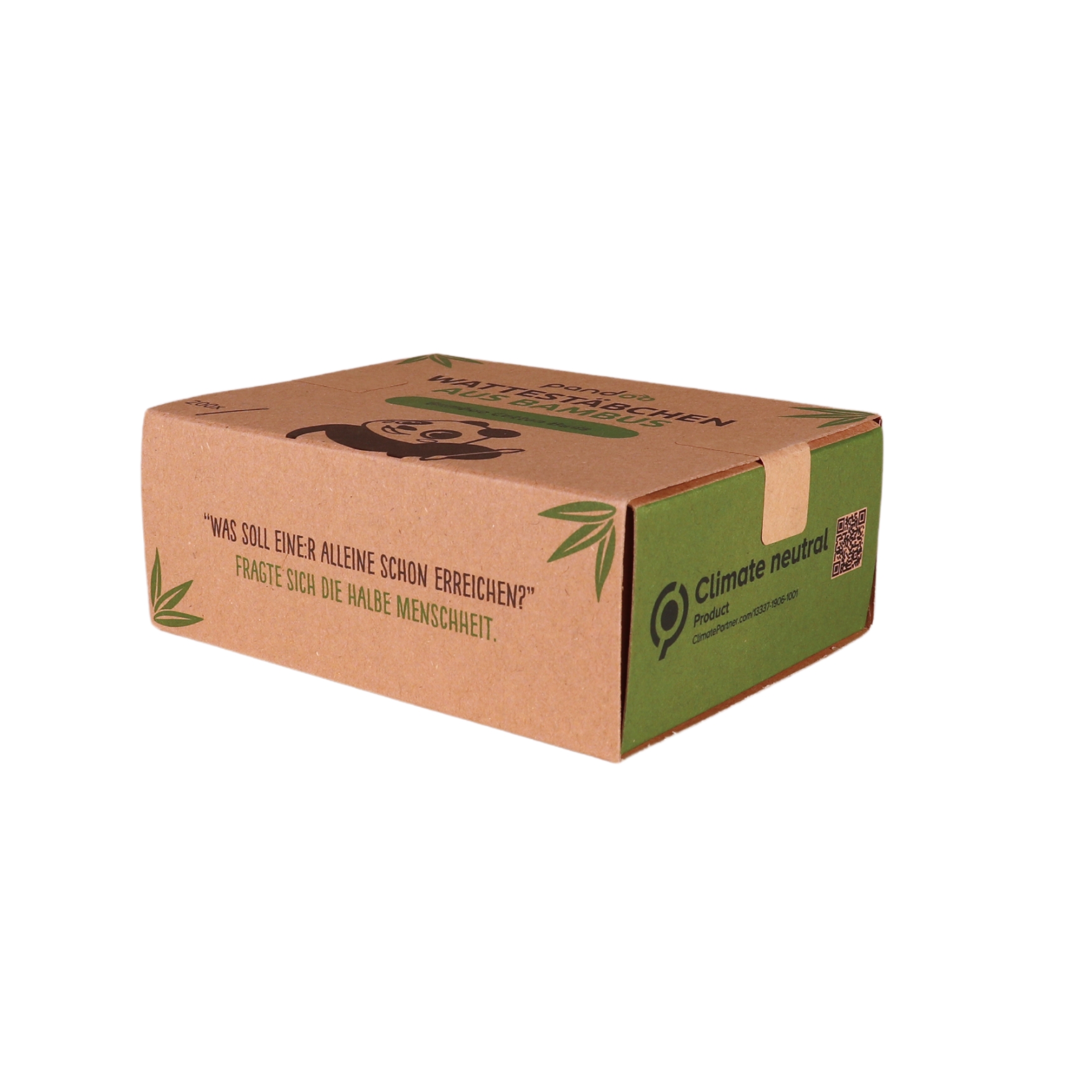 Vatové tyčinky jsou balené v krabičce z recyklovaného papíru.