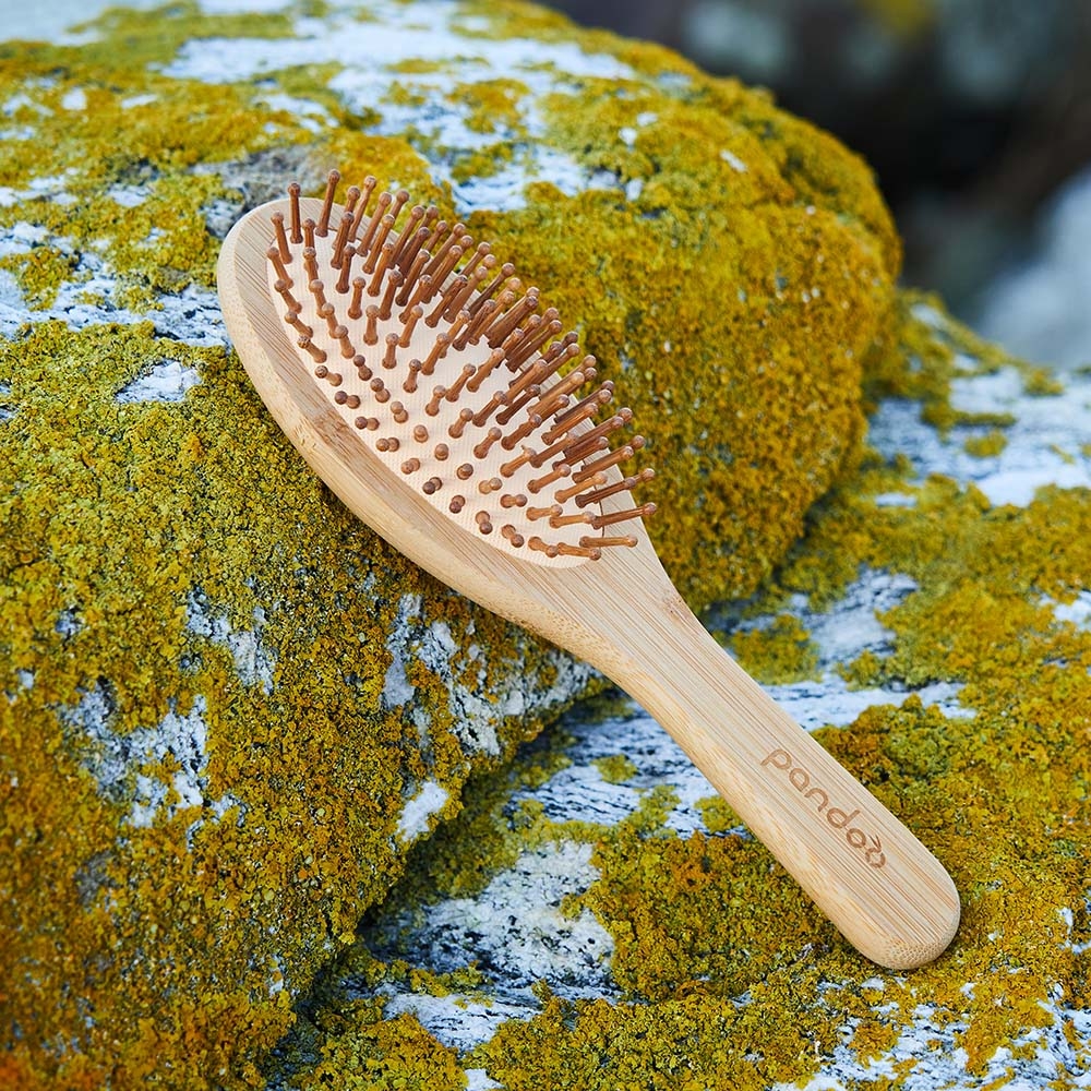 výbornou udržitelnou alternativou za tradiční plastové a dřevěné kartáče na vlasy. Štětiny jsou vyrobeny z bambusu a kartáč je tak vhodný i pro vegany.