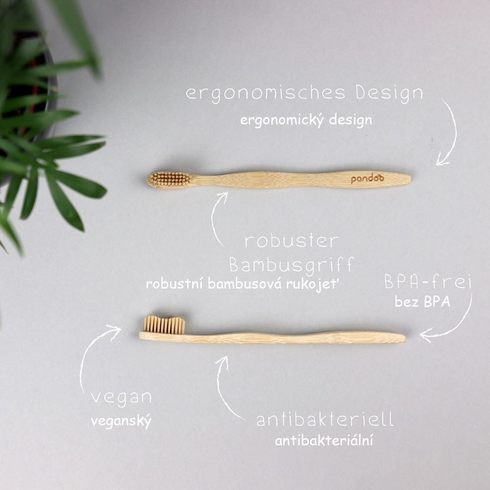 - Materiál: tělo: 100% udržitelně pěstovaný bambus; štětinky: nylon