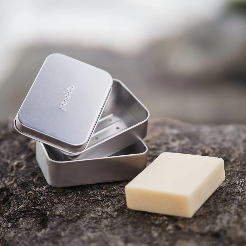 cestovní hliníková krabička na mýdlo s vyjímatelnou odkapávací mřížkou. Vyjímatelná odkapávací mřížka má tu výhodu, že