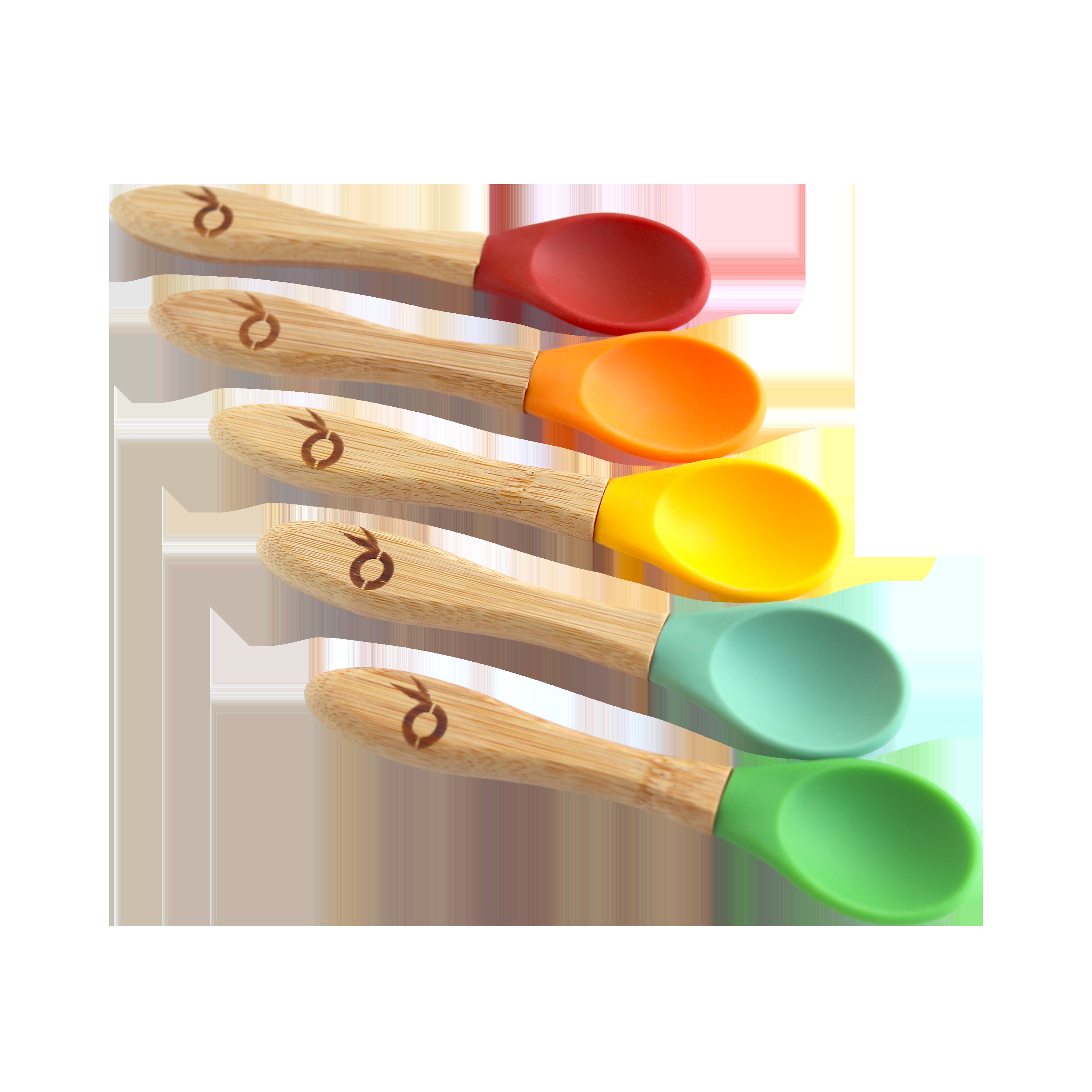 Dětské bambusové lžičky s měkkou silikonovou hlavičkou jsou