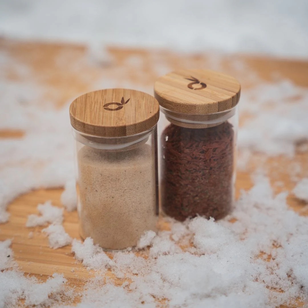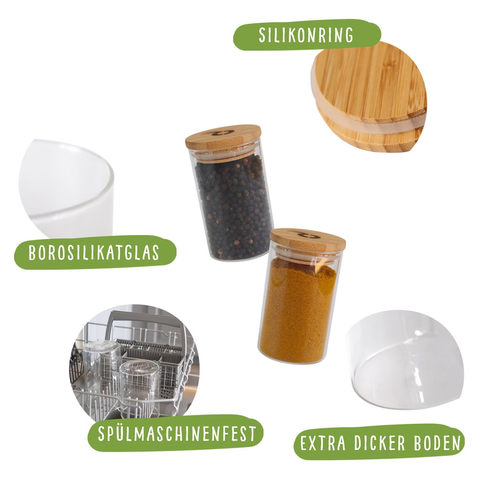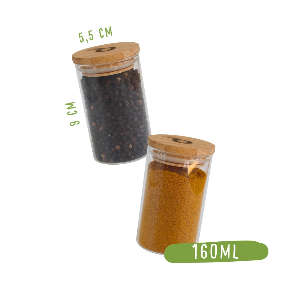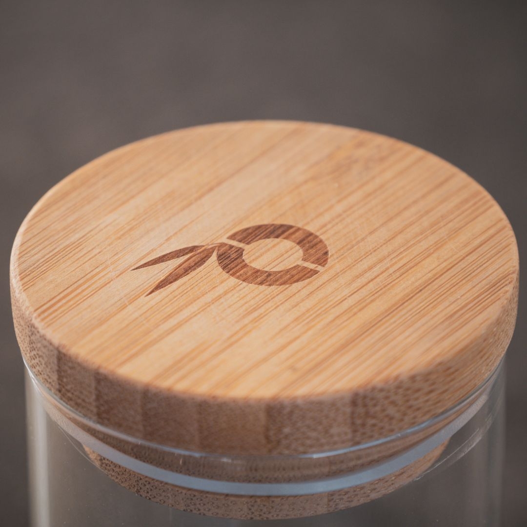 - Materiál: dóza: borosilikátové sklo, víčko: 100% bambus se silikonovým těsněním