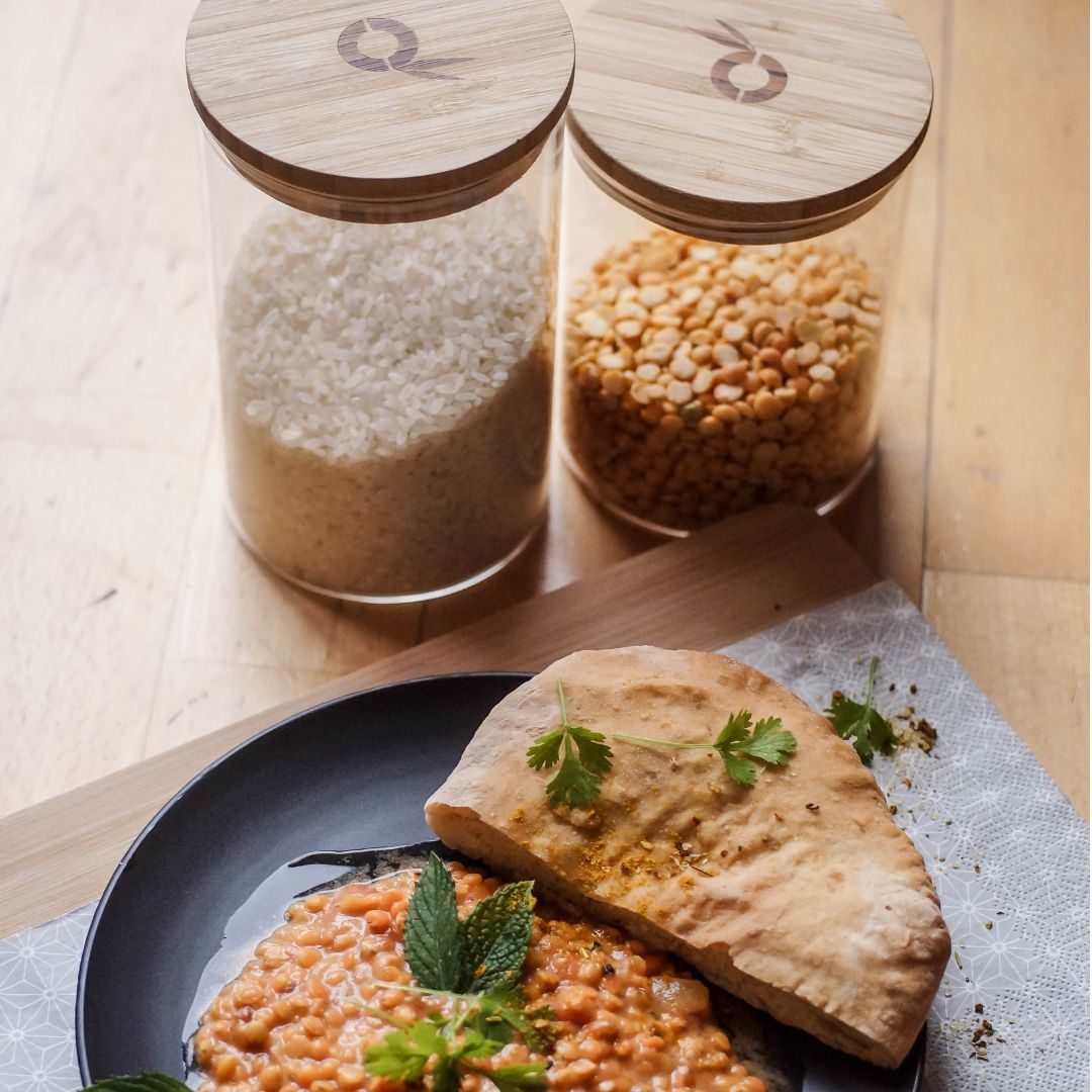 - Materiál: dóza: borosilikátové sklo, víčko: 100% bambus se silikonovým těsněním