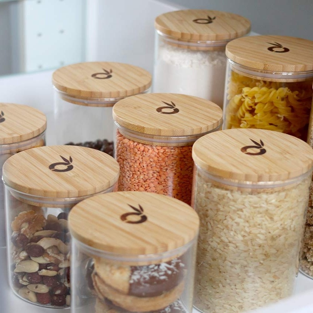 Dóza na potraviny z borosilikátového skla s bambusovým víčkem