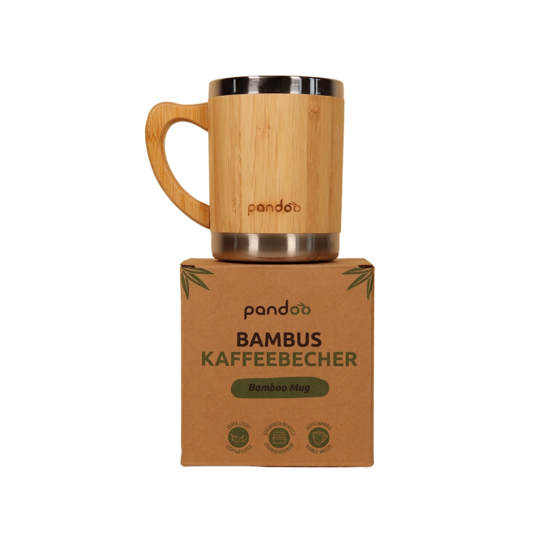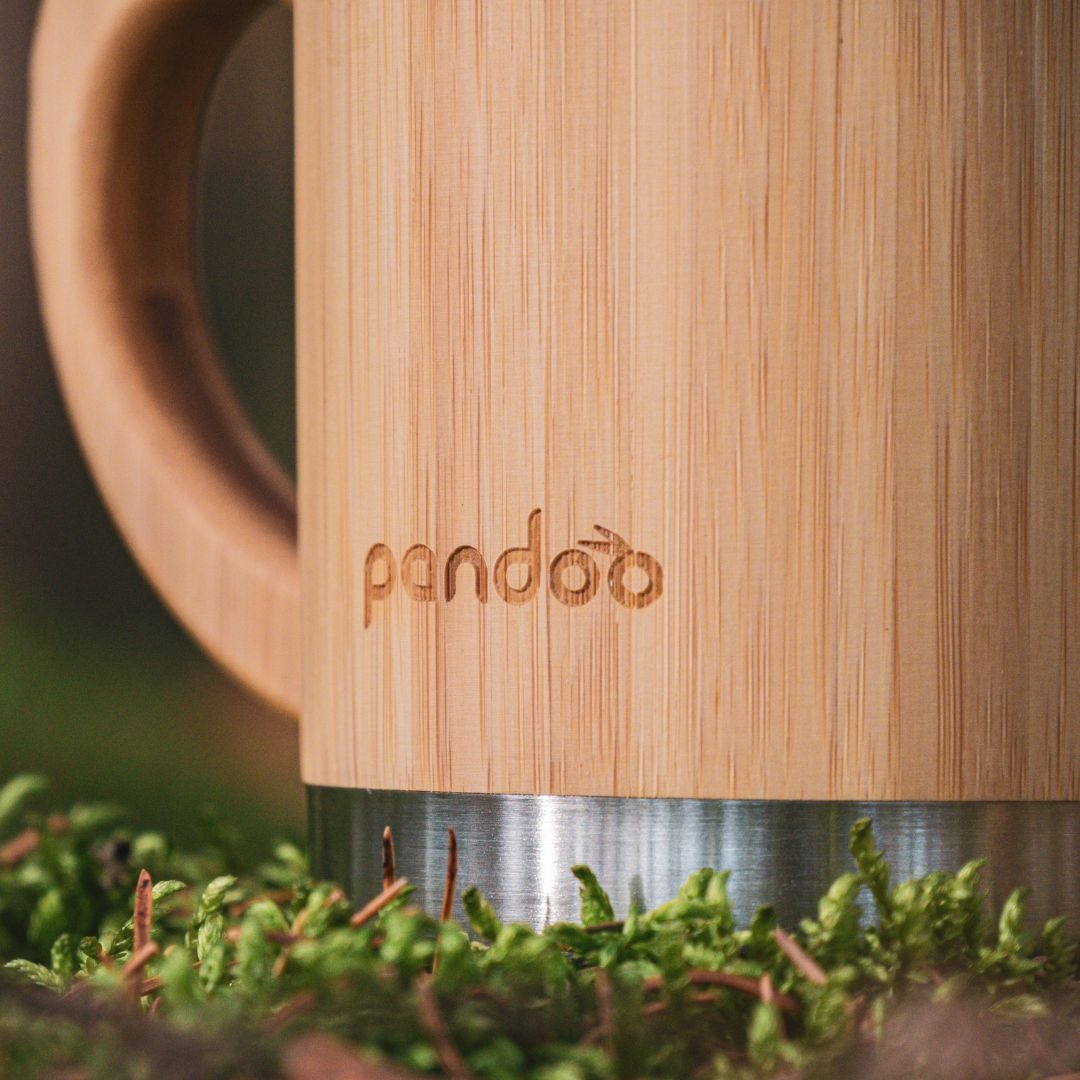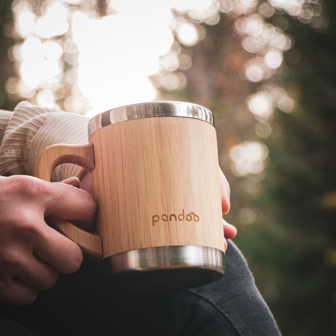 kvalitní designový dvoustěnný nerezový hrnek na kávu a čaj s bambusovým povrchem. Je ideální pro každodenní život bez plastů. Díky