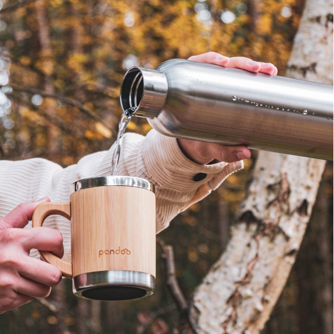 - dvoustěnný nerezový hrnek s 100% udržitelně pěstovaným bambusovým povrchem