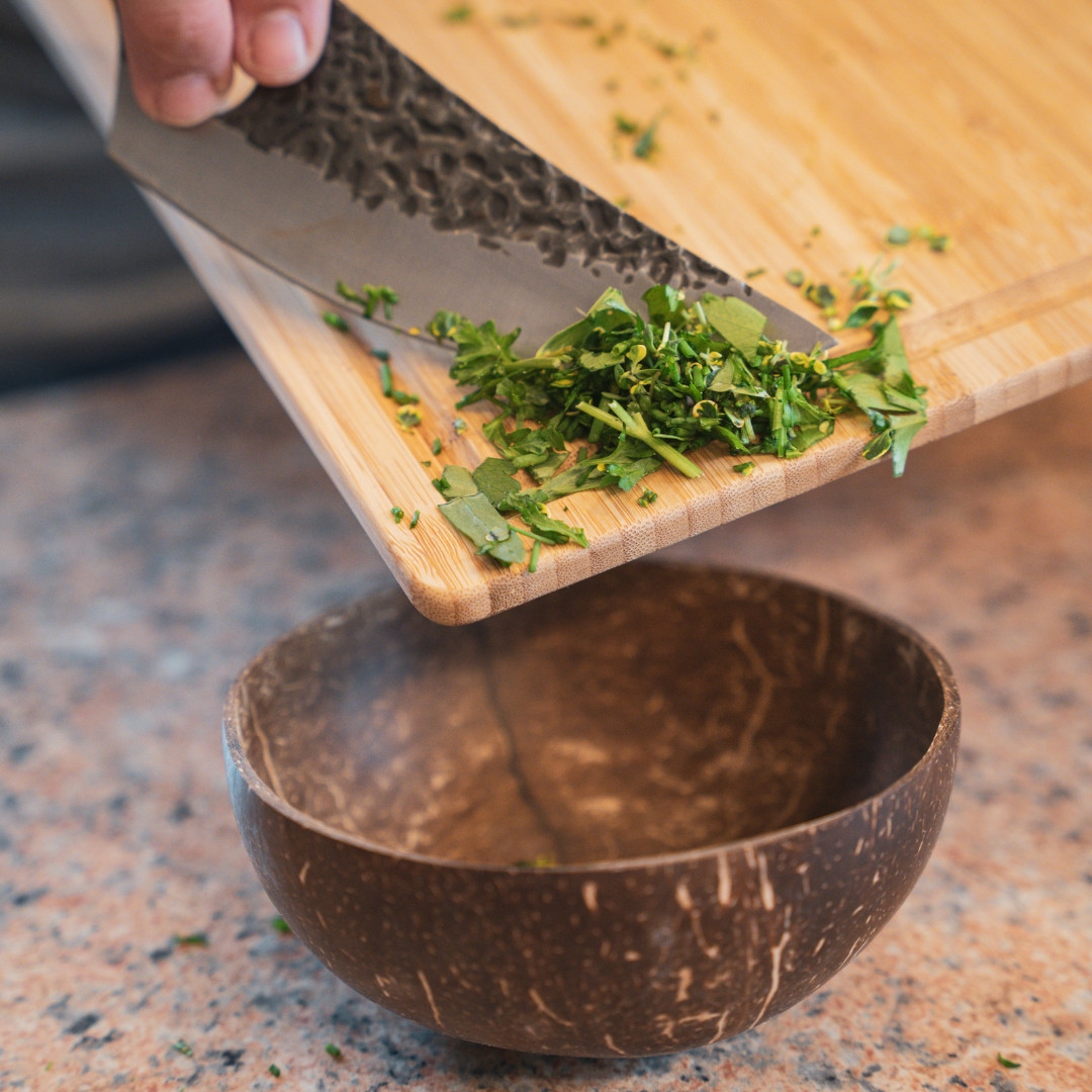 ručně se z nich vyrábí kokosové misky. Lžíce jsou pak