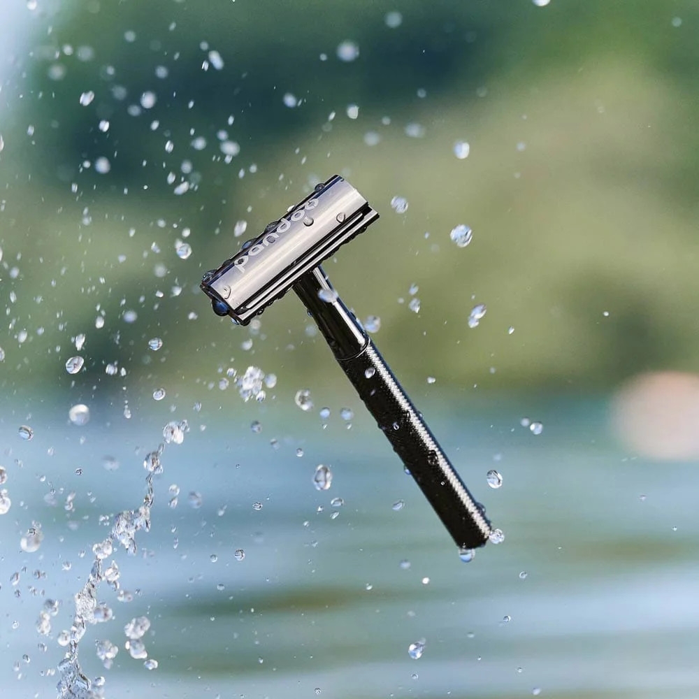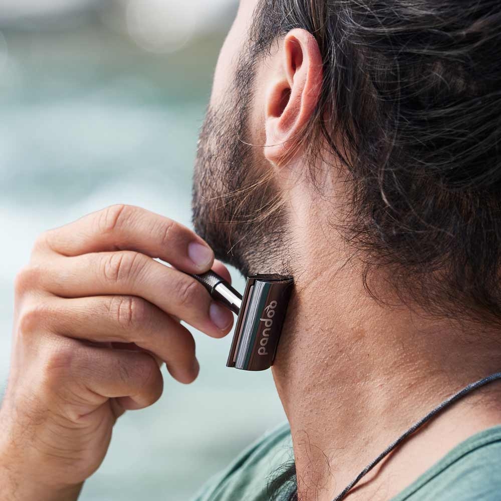 Pandoo Kovový holicí strojek bez stojanu a 10 ks žiletek černý