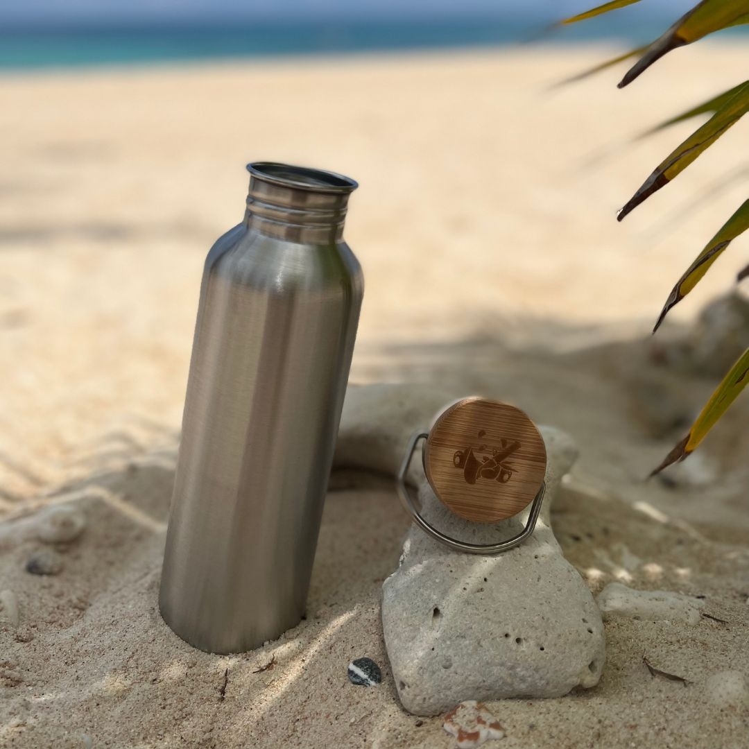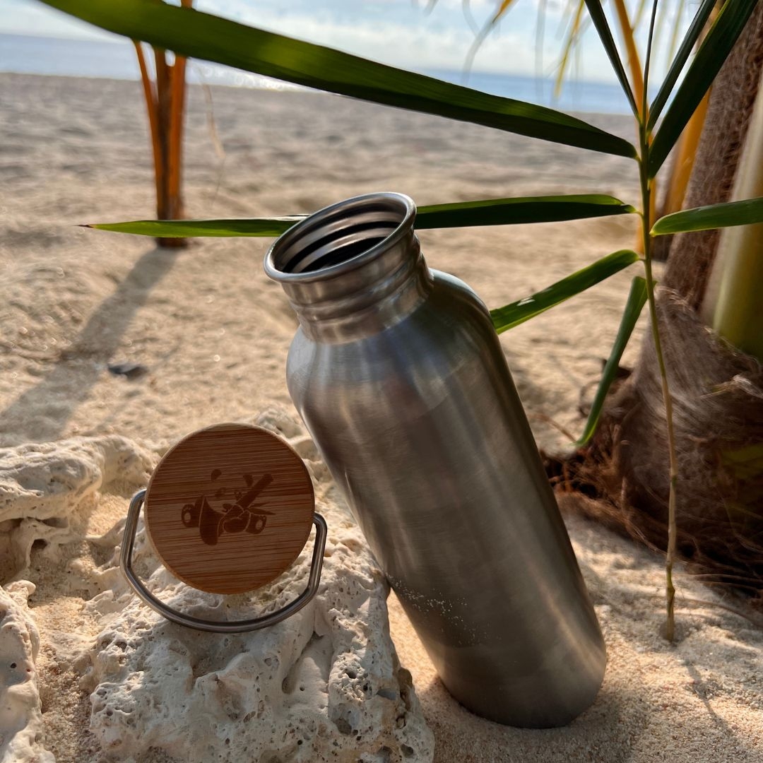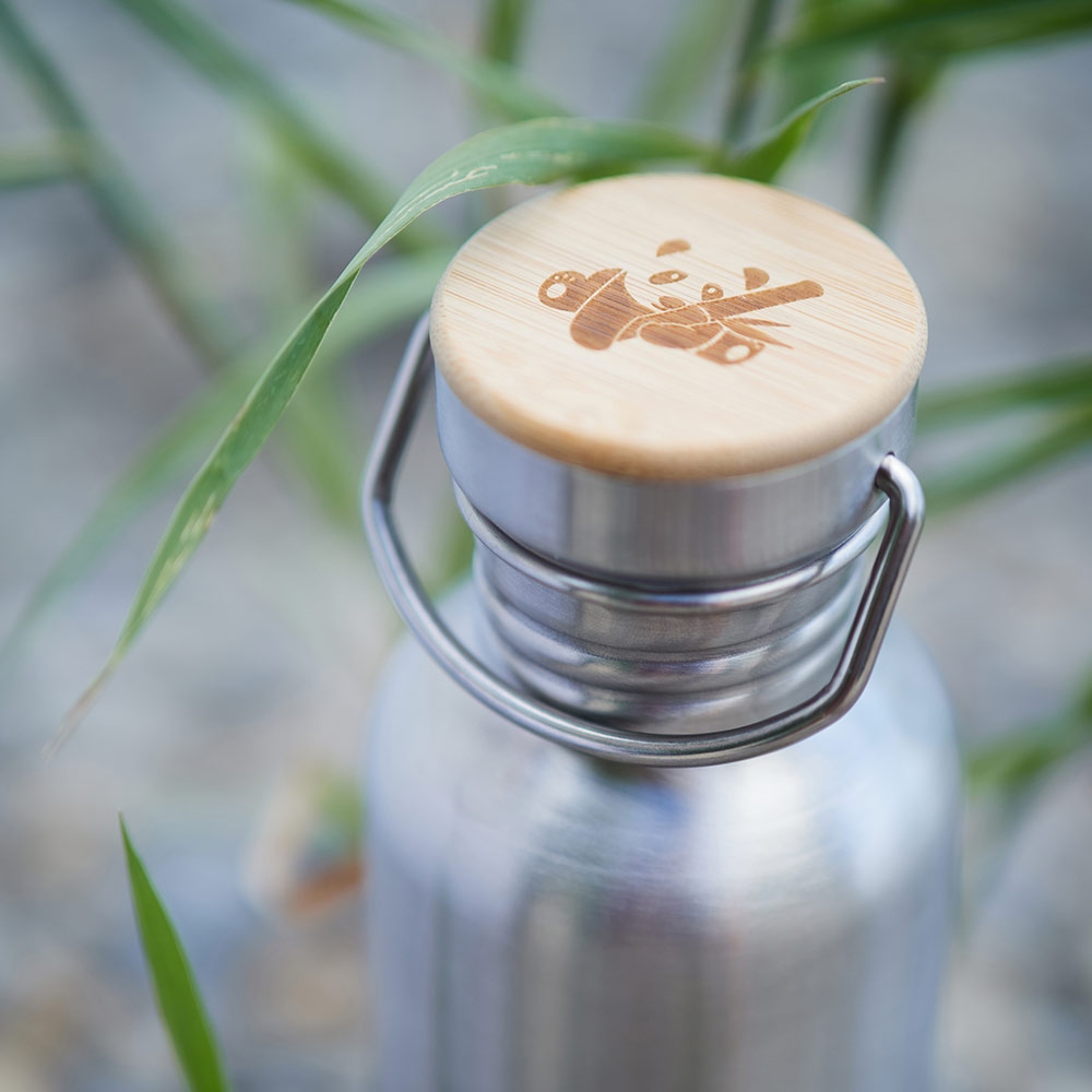 Pandoo kvalitní nerezová lahev na vodu je výbornou alternativou za plastové lahve. Lahev je opatřena bambusovým víčkem se silikonovým těsněním bez BPA.