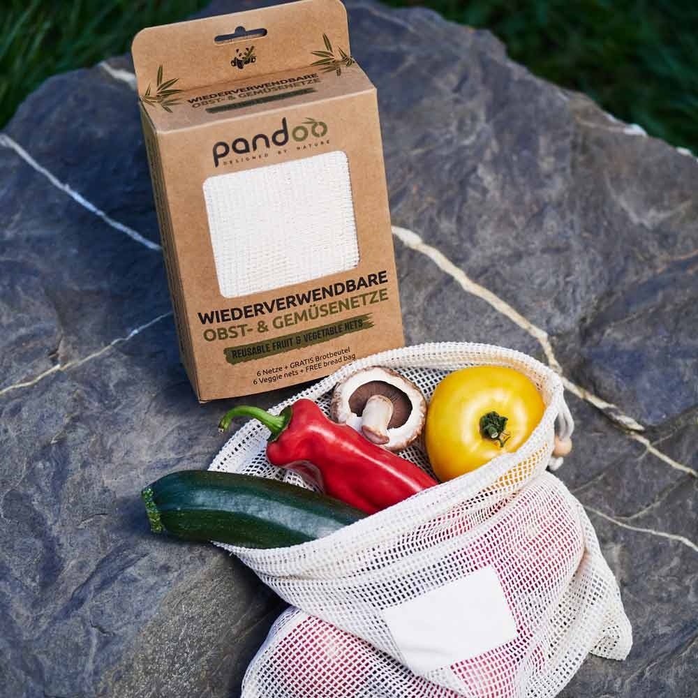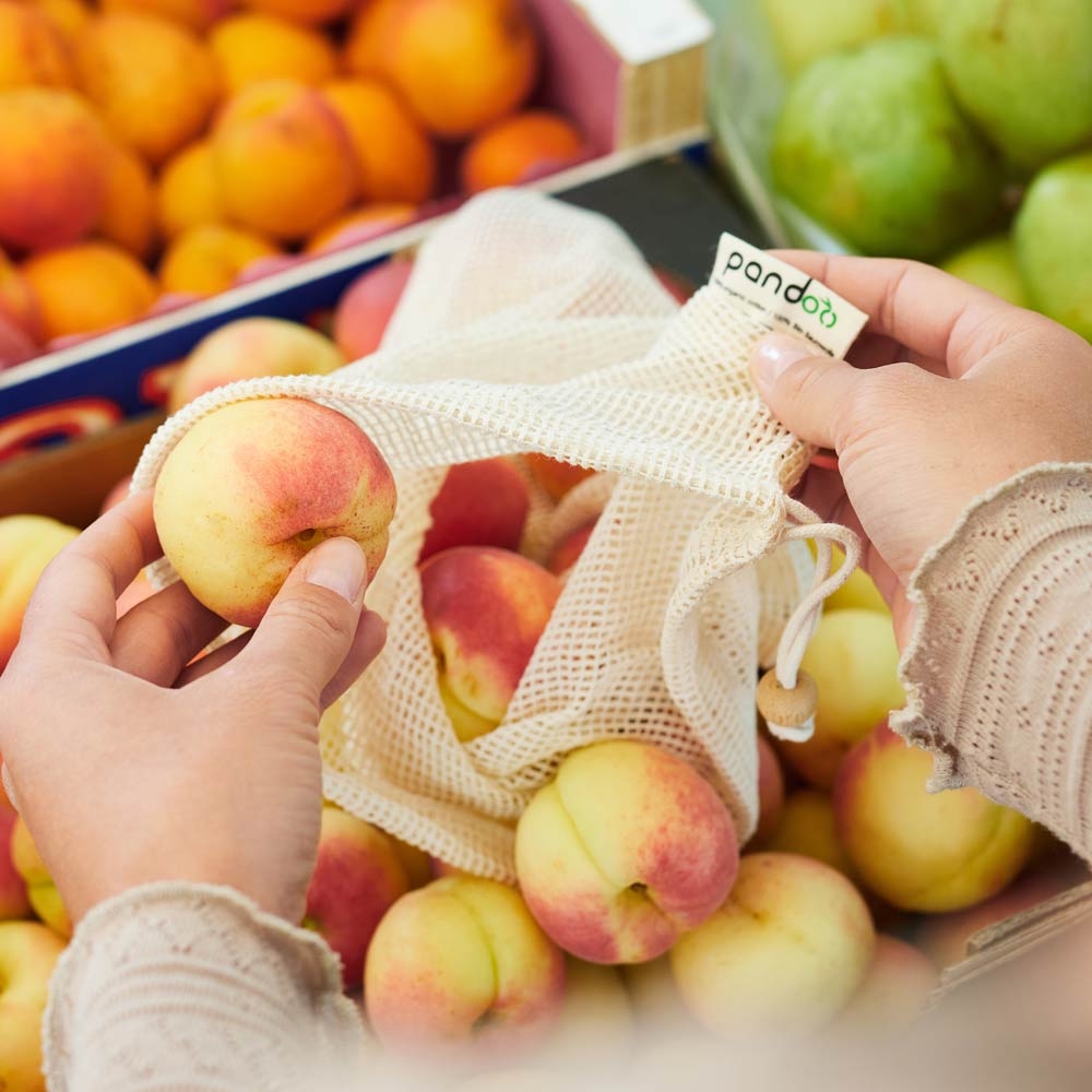 Pandoo Síťový sáček z bio bavlny na ovoce, zeleninu a chleba set 7 ks je