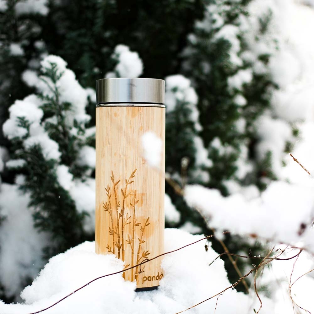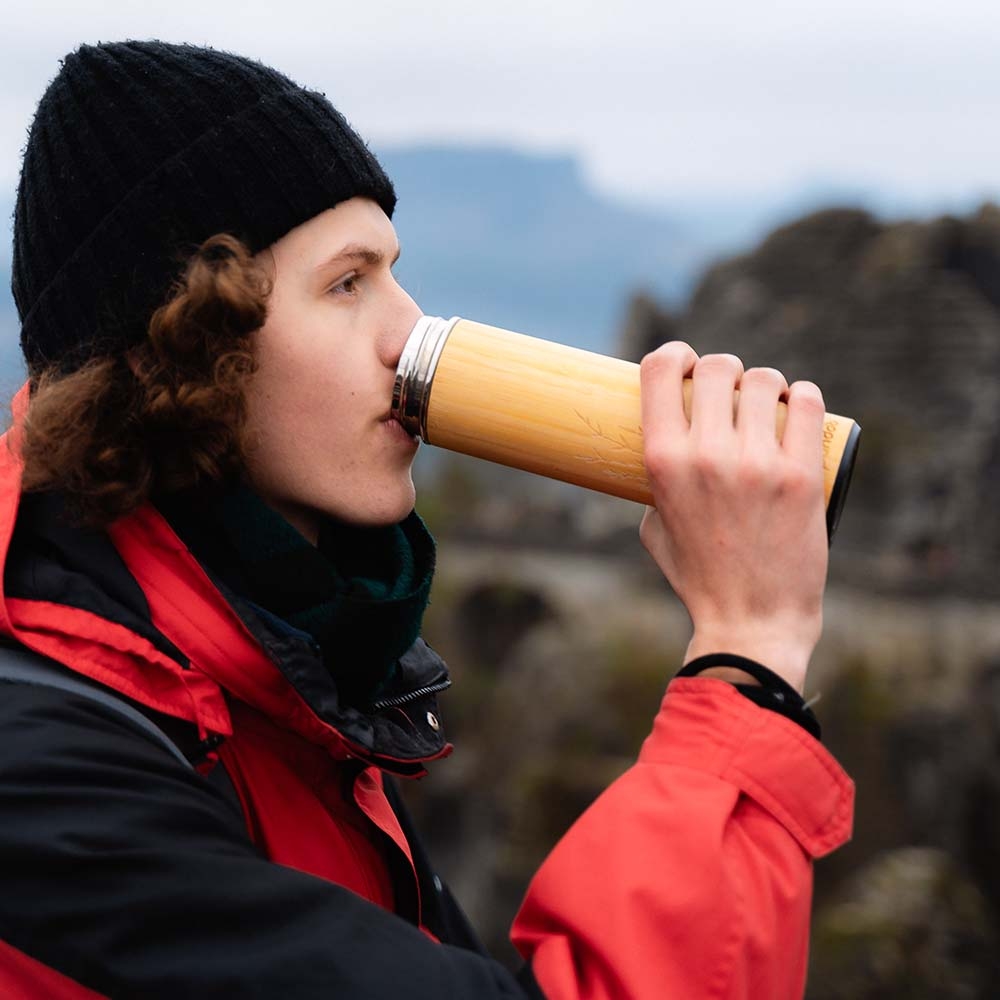 - dvouplášťová vakuová termoska s 100% udržitelně pěstovaným bambusovým pláštěm