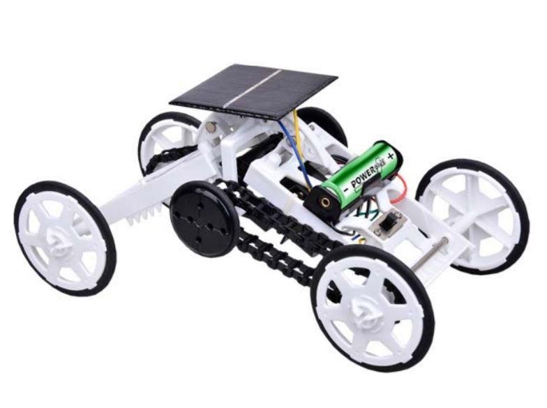 Terénní autíčko, hybridní poháněné solárním panelem a energií z AA baterie. Ukázka jak solární energie dokáže pohánět motor. Hračka zároveň seznamuje děti s obnovitelnými zdroji energie. Při skládání vám pomůže přehledný manuál s obrázky. Pohon auta je 4x4. Autíčko je schopné překonávat drobné překážky, které mu připravíte do cesty.