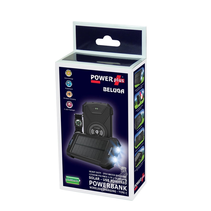 POWERplus Beluga je robustní, voděodolný IPX4 solární powerbank vybaven Li-polymerovou baterií s kapacitou 10 000mAh, která dokáže nabít váš tablet, smartphone, GPS a podobné zařízení.