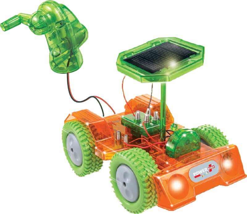 Autíčko poháněné solárním panelem nebo dynamem. Využívá nejmodernější technologie, ke kterým přiučí děti bez použití baterií nebo jiného napájení. Pomocí dynama může autíčko pohybovat dopředu a dozadu. Venku mohou děti využít solární panel. Autíčko hravě poskládáte za pomoci přiloženého manuálu. Děti tak mohou vytvořit své vlastní autíčko poháněné ekologicky.