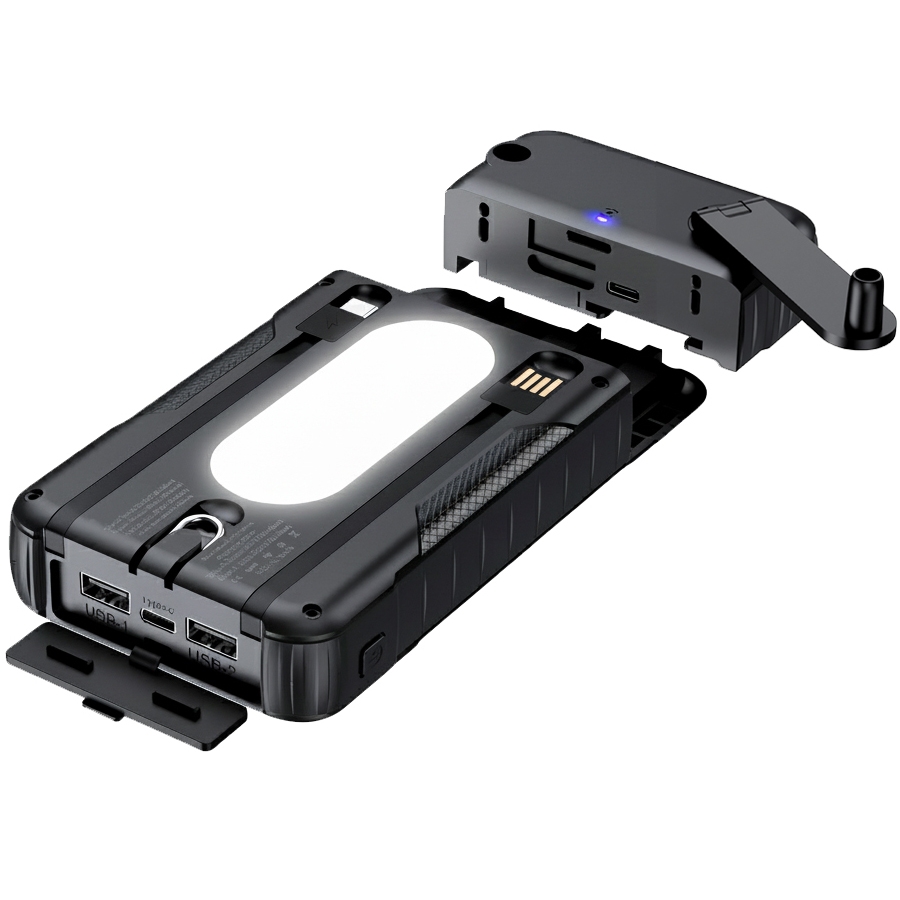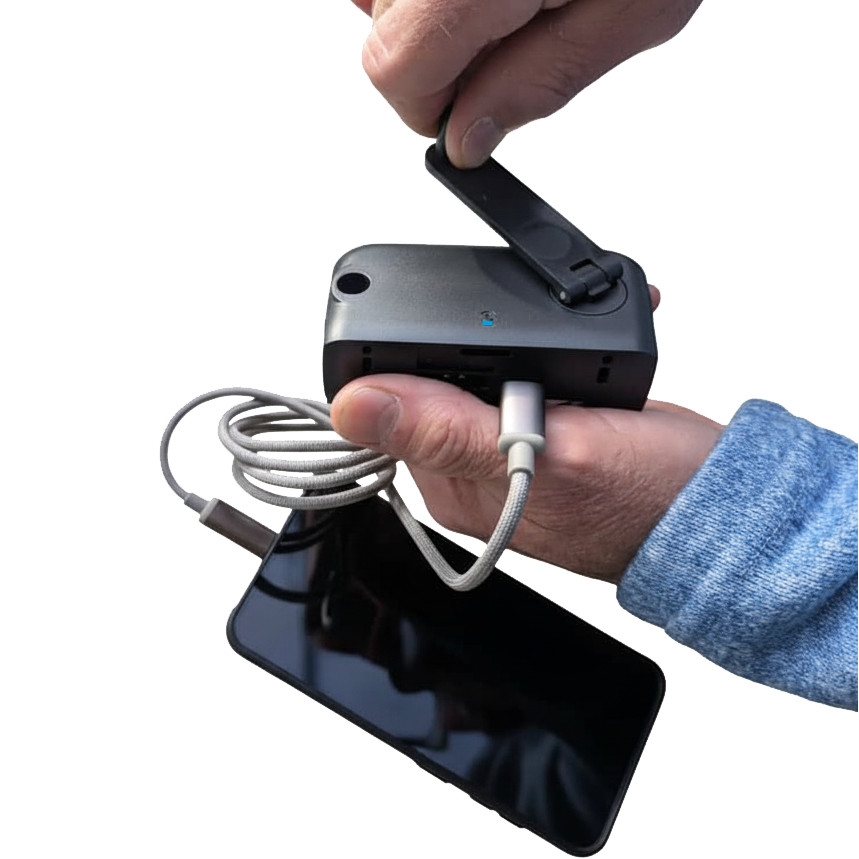 odnímatelný dynamogenerátor pro okamžitou výrobu energie – ideální pro nouzové situace nebo situace bez připojení k napájecí síti.
