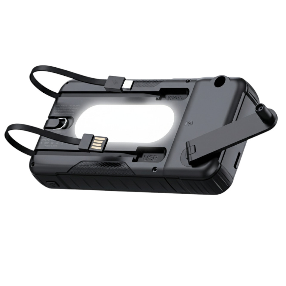 disponuje integrovaným solárním článkem a odnímatelným, samostatně použitelným dynamo generátorem. To znamená, že máte k dispozici několik spolehlivých způsobů dobíjení, díky čemuž jsou vybité baterie minulostí!