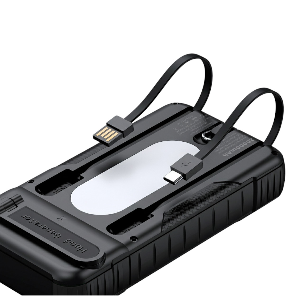 Už nikdy nezapomenete na nabíjecí kabely! Rhebock obsahuje integrovaný nabíjecí kabel USB-A pro snadné dobíjení powerbanky a vestavěný výstupní kabel USB-C pro nabíjení zařízení na cestách.