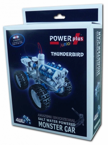 S tímto autíčkem nepotřebujete žádné baterie. Do palivového článku jednoduše přidejte pár kapek slané vody a Thunderbird, díky svým velkým pneumatikám, s pohonem 4x4, projde všemi překážkami.