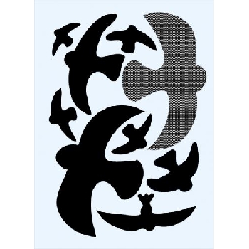 Samozřejmě výlep těchto plných siluet můžete kombinovat i s perfovanými siluetami nebo s využitím jiných ochranných samolepek z naší nabídky. Ptákům na tvaru nezáleží, samolepka jakéhokoliv tvaru jim jen označuje překážku v průletu. Lepte vždy (pokud možno) z vnější strany skla.