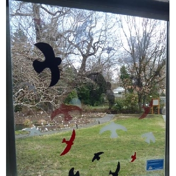 Barvu siluet volte co nejvíce kontrastní k barvě okolí, která se v okně nejvíce odráží. Zvažte i mix barev siluet, protože barva okolí se často mění v závislosti na ročním období.