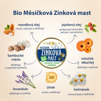 Bio Měsíčková Zinková mast vychází z tradiční zinkové masti, kterou používaly už naše babičky, když potřebovaly pomoci s