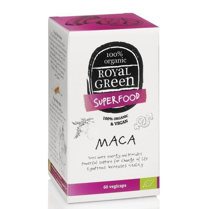 Maca (Lepidium Meyenii Walpers) je malý kořen, který roste v Andách v Peru ve výšce 3500–4300 m.n.m. a je tedy nejvýše pěstovaná rostlina na světě. Kořen maca pro Royal Green je sklízen po 8 měsících přirozeného růstu, poté je vysušen a ručně přebrán – vybírají se pouze kořeny s vhodnou velikostí a barvou. V přípravku Royal Green Bio Maca je použito 80 % černých, 15 % nachových a 5 % žlutých kořínků. Přípravek je sušen při maximální teplotě 45°C. Díky tomu obsahuje nejširší možné spektrum živin a přináší maximální účinek.