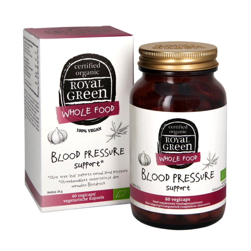 Royal Green Blood Pressure Support obsahuje 100 % certifikovaný bio černý česnek, listy červené vinné révy a listy olivovníku. Listy olivovníku podporují udržení zdravého krevního tlaku a jsou prospěšné pro prokrvení.* Produkt je vhodný pro vegany a vegetariány. Zažijte sílu přírody!