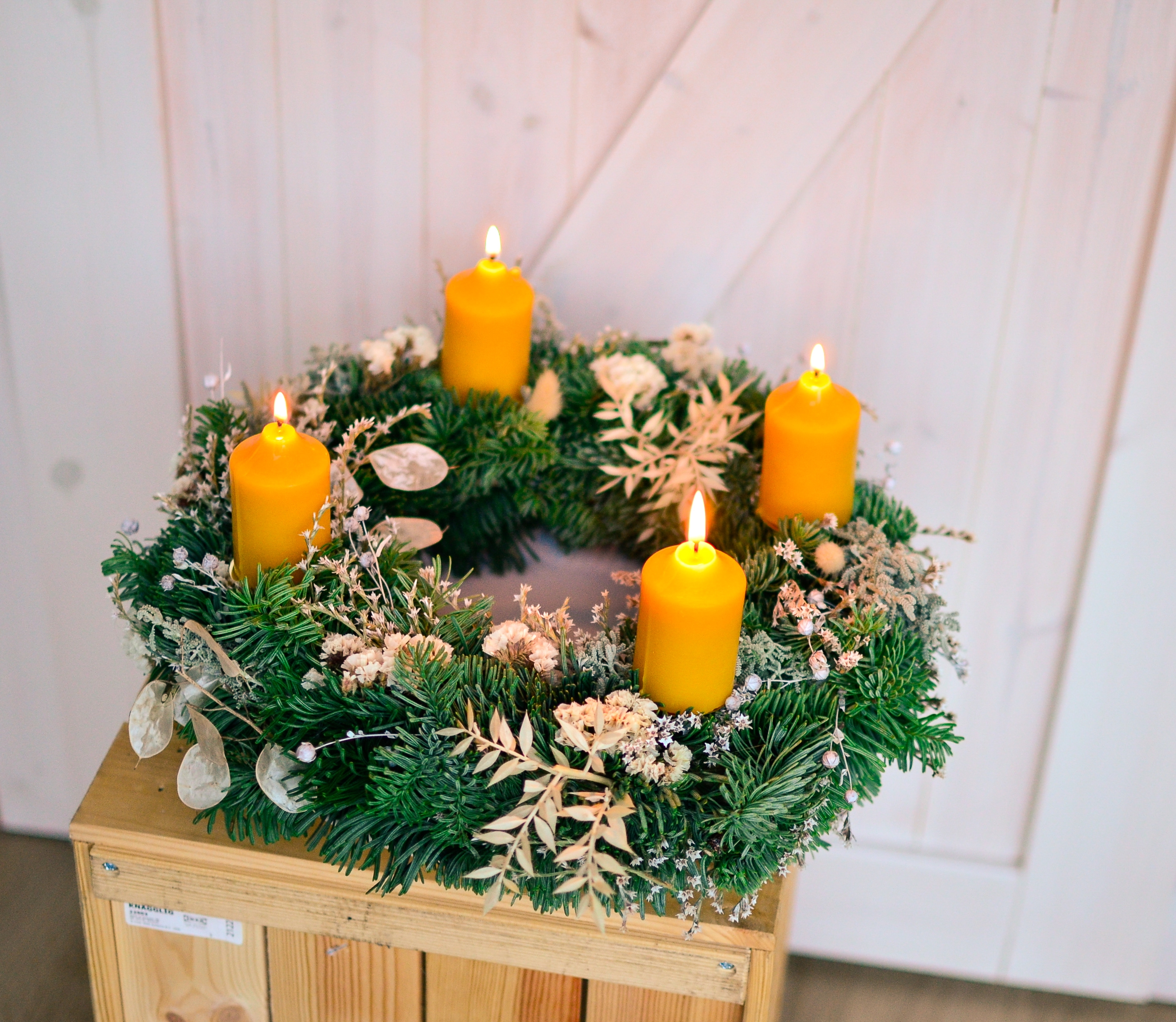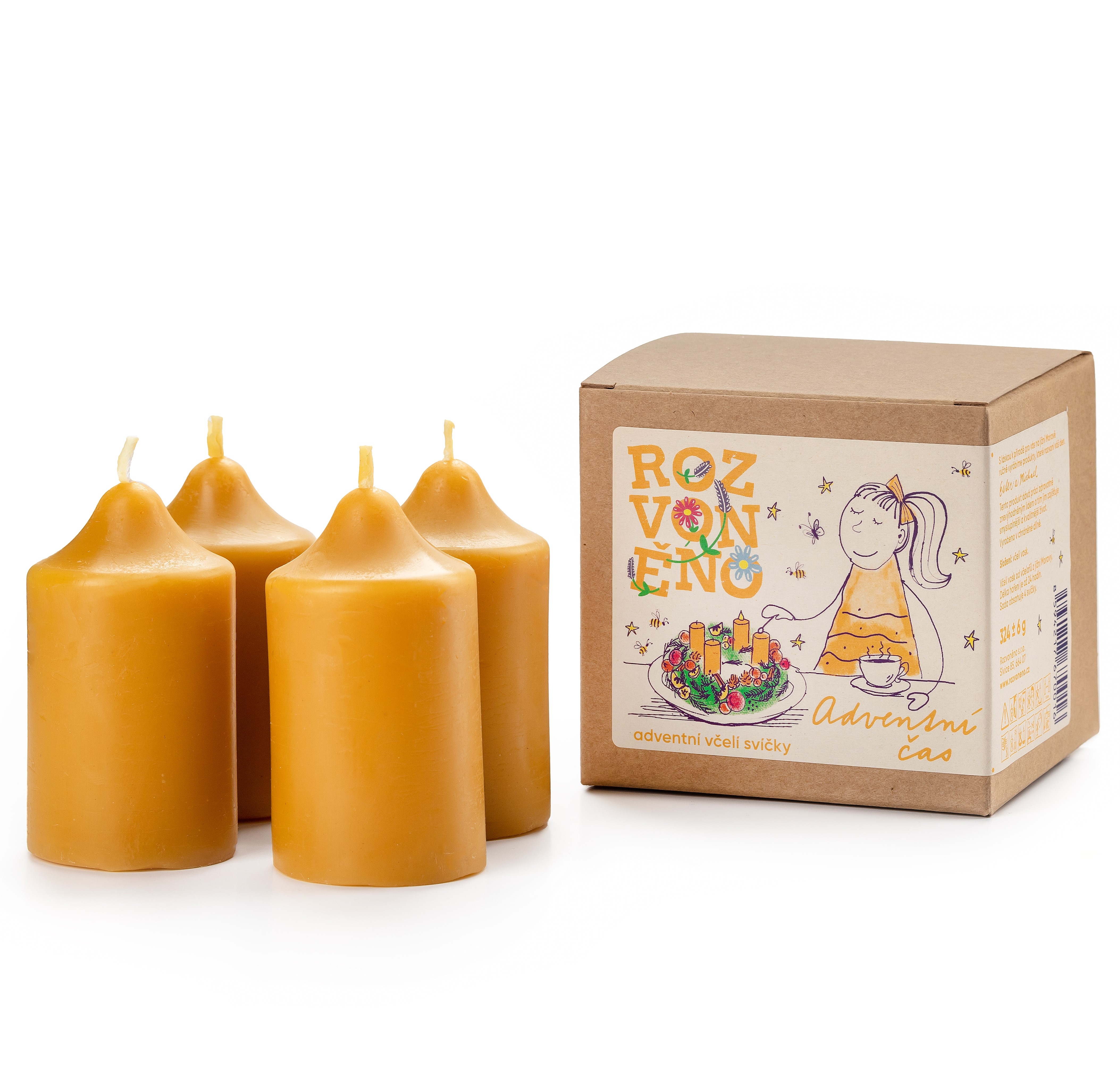 Adventní čas obsahuje sadu čtyř adventních přírodních včelích svíček.